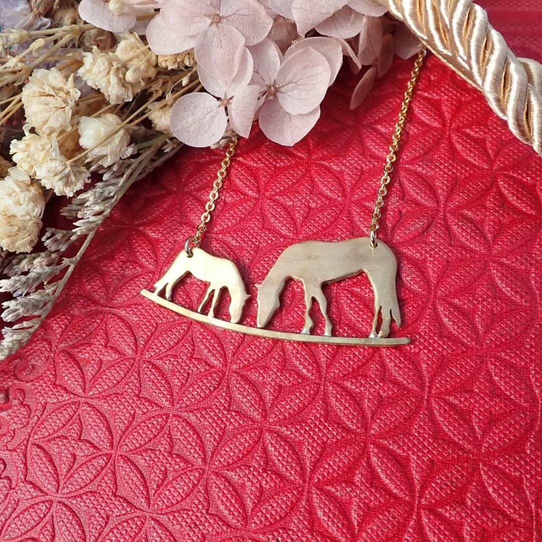 しらほしとクレハの真鍮ネックレスです。